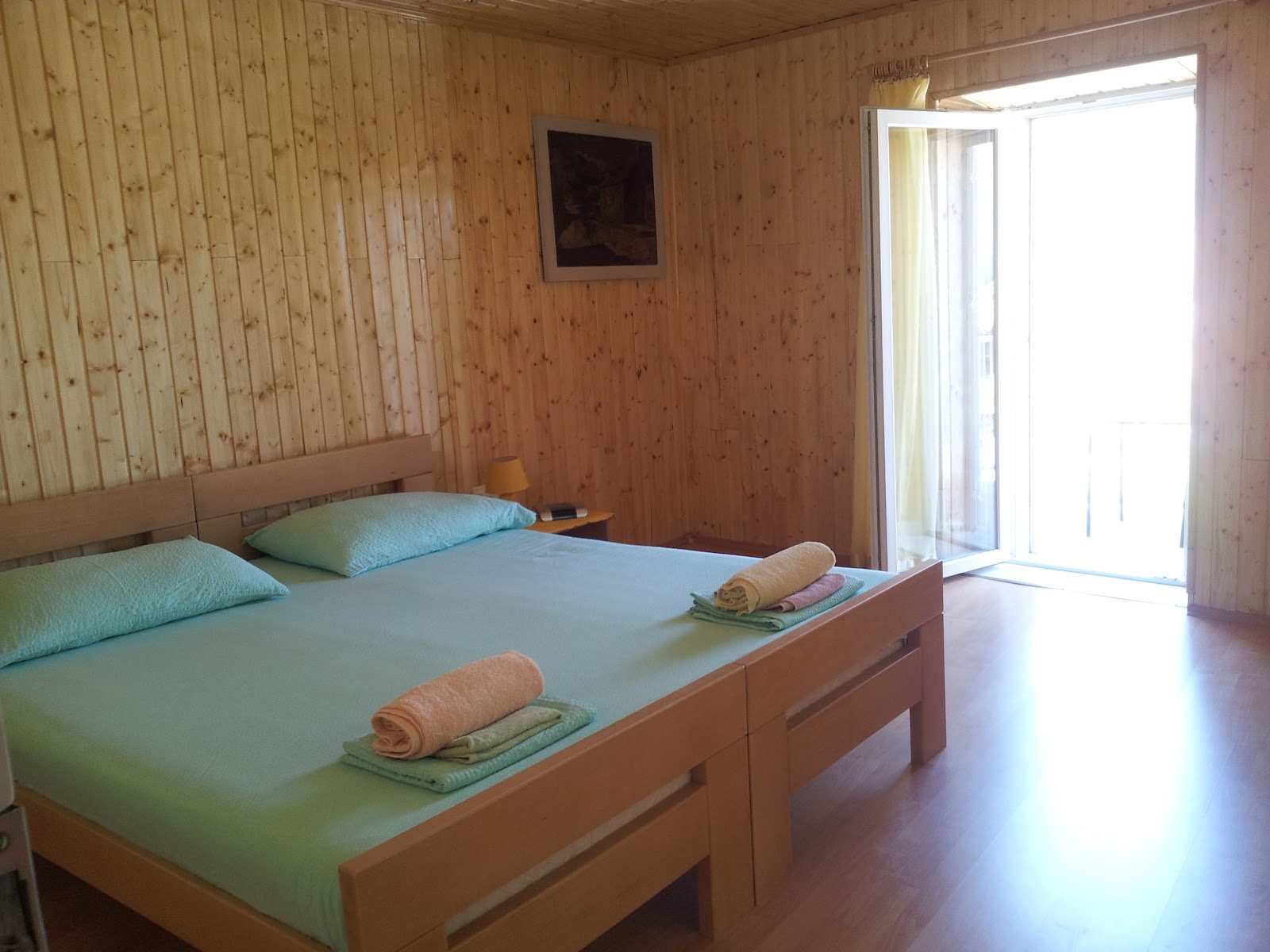 After the ferry emptied with the new guests arriving in Mljet, we could slowly board the G&V ferry. The trip to Korčula took just less than an hour. We soon arrived in Korčula town (lat. Corcyra Nigra, Korkyra Melaina) on the island of the same name and it was an impressive view with the old town located on a peninsula and the huge mountains opposite, the Pelješac peninsula. From the ferry, we walked to the apartment we had booked, "Apartments Neno", which is just outside the old town. It was a bit difficult to find at first, and we took a wrong turn before we finally found the right alley with stairs leading up to the apartments. We did not really see a sign for the Apartment, but we had the address. It had an okay air-con, small kitchen with a big refrigerator and a beautiful little balcony to the ocean and the old town. The Wi-Fi unfortunately only worked at the stairs to the apartment, and for hot water, we needed to press a switch 30 minutes before a shower. There was no TV (who needs it on vacation anyway?), and the furnishing was very basic. It was very spacious though, and the apartments have an excellent location - in walking distance to the ferry pier and the old town, as well as a nearby rocky beach. The bus station is even closer.